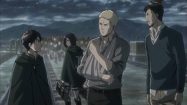 阿明嘗試要向其他人說明情況,要主角和三笠不要有敵意
