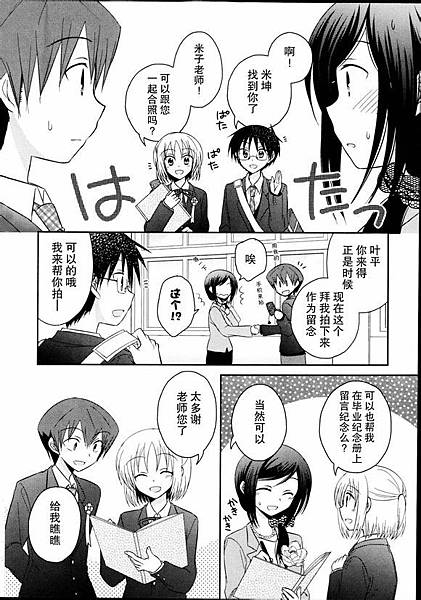 學園祭,女主角班是執事咖啡廳,男主角去找她女主角很害羞,旁人都說在放閃光了;另一邊米澤和米子老師三場遊戲米子老師二勝(麻雀、抽鬼),米澤以為一定會贏(飛鏢),這對根本就是在約會嘛。
