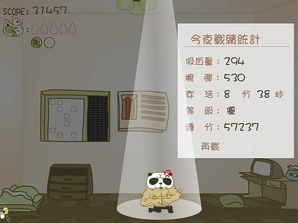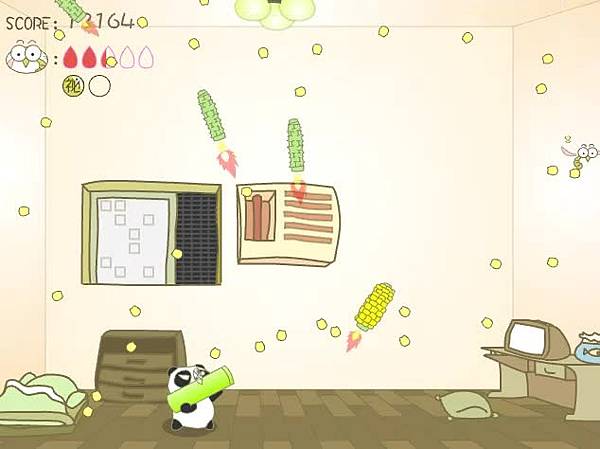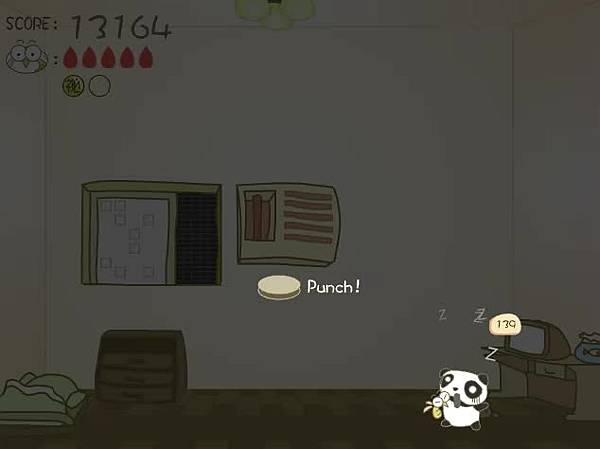 畫面背景分為分為關燈與開燈兩部份,熊貓沒有發現蚊子的時候會進入關燈狀態,玩家這個時候的血會補滿。