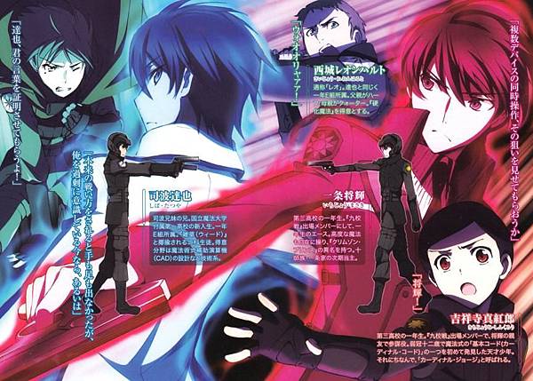 這類型的故事是一開始就有預設立場類型的故事,比賽是很好的描寫的題材,類型故事要好看就是要有好的對手。像是棒球比賽對手會有誰呢?打個比方來說就是台灣的球隊可以打進日本甲子園決賽的程度,或是類似的劇情,這個例子不同地區的人的感受會有很大的不同,就是有預設立場類型的故事,而這個魔劣的九校戰每一場都有特色,雖然是一路勝利仔細一看其實並不那麼一帆風順。