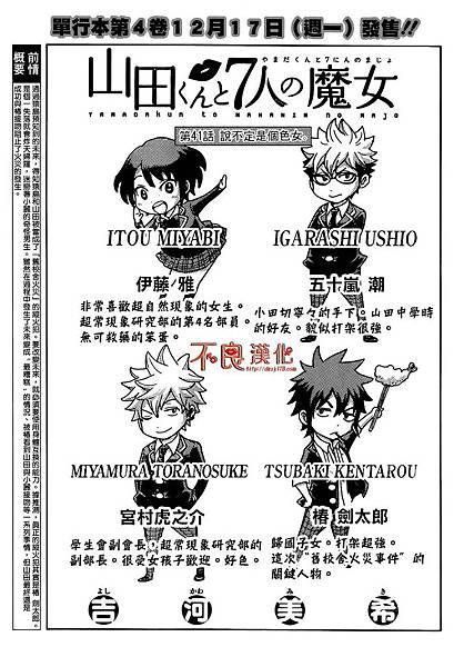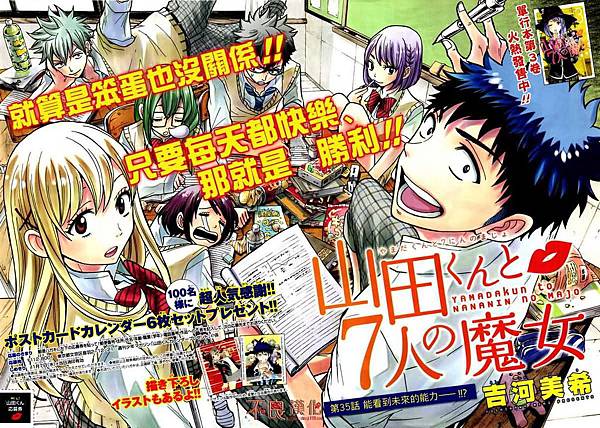 這個故事是一個叫做山田的主角和七個有特殊能力的女生的故事。男主角山田龍因故和白石麗互換了身體,兩人解決彼此的問題作開頭,山田解決了白石麗交不到朋友的苦惱,白石則是解決了山田成績不好的缺點,之後學生會的副會長宮村虎之介因此認識兩人(04話),之後加入的社員伊藤雅(07話),第10話是白石因為感冒和主角互換身體,眾人在測試主角能力的一回。第11話學生會長山崎春馬好像知道七人魔女的事情,在知道主角和宮村的情況之後就要他們去說服弓道部的社長,其實是要他們去換身體解決這個問題,主角認為這個會長真的是個老狐狸。在14話的時候開始了另一位副會長的小田切寧寧篇,第18話得知小田切的能力是好感度增加,因此男主角的能力是複制接吻對象的能力。20話確定了這個推論。維基山田君與七魔女。