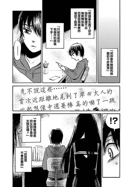 這一話有個新角登場,她用主角和她共感,以寄信為餌,在拘留所把一個犯罪者殺掉了。這個新角是個萌角,事後還寄信稱主角岸田大人,自稱是GHOST,讓早川看了很是生氣。