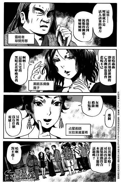 主角和主角母親、魔子等人在島上要過上三天,這一話提到主角母親(拉里維夏希)職業是占星師,她看不到早川,後來魔子發現秘道逃了出來。