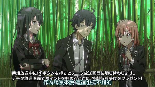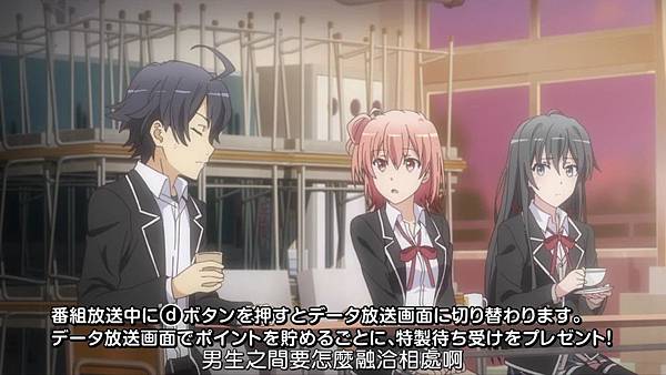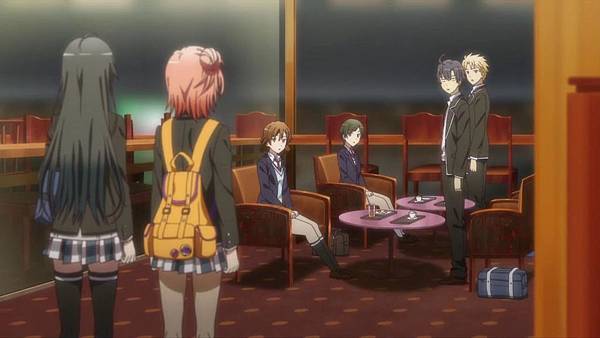 這一話討論版大致上已經捏他很多內容了,主要就是眾人想湊合戶部與海老名這一對,但是這時黃頭髮的女生說,海老名以前就很多人想追,但她都拒絕了,之後主角才發現是因為海老名本身討厭男生的緣故而會拒絕告白,因此搶先在戶部告白之前先告白讓海老名說出現在不想和任何人交住的對話,這樣戶部就比較不會受傷,但是由於主角平和都和雪乃和結衣要好的緣故,主角的告白根本是來亂的,結衣希望主角不要再這麼做了。最後海老名說這委託成功真的要感謝主角,如果是主角的話說不定可以交往的話,這話就這麼結束了。