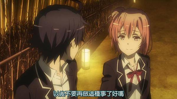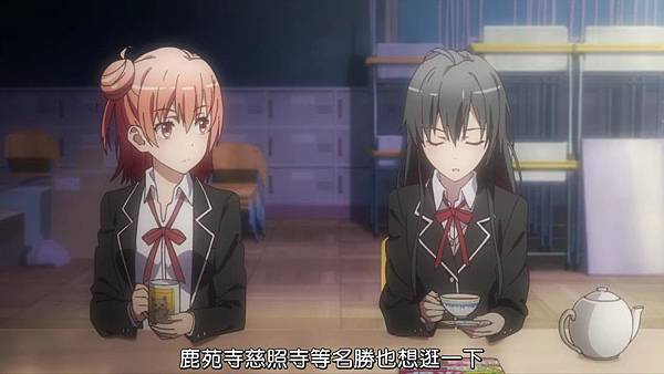 這邊為之前的文化祭劇情做收尾並交代劇情。男主角用犧牲自己的方式把衝突解決了,於是男主角說沒有任何人受傷的世界完成了。之後恢復日常生活,這是第七卷的內容,戶部對海老名有好感,因此到侍奉部尋求協助,結衣說她對於戶部的看法大概就和好人差不多,男主角各種吐槽,於是供奉部收到了在修業旅行將兩者搓合的任務。之後是分組,男主角和戶塚彩加同組,總之就是京都之行(上),是各種的京都名勝+青春小說橋段。就不寫流水帳了,看圖就好。