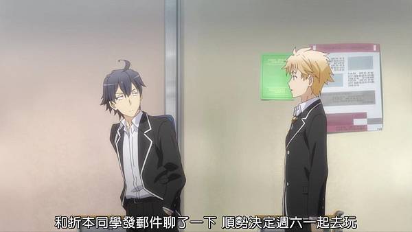 葉山隼人找主角和主角過去暗戀過的國中同學約會,對方前幾話有出現過一個叫折本佳織。星期六四個人去看電影,主角回想他過去和他沒有正式的交往記錄,只存在暗戀一般的感情而已,今天這樣算是結束了吧。中間還有上一話登場的學生會候選人彩羽和戶部在逛街,彩羽看到主角就在吐槽主角丟下工作不管來約會(主角不是認識比這還正的女生了嗎,笑),之後是雪乃的姊姊陽菜跟蹤的事件,晚上用餐的時候,隼人把雪乃和結衣找來了,自己扮演壞人角色,折本佳織和另一位同伴先告退,雪乃看來是要自己去選學生會長替彩衣解圍的樣子,兩人告退後,隼人和主角單獨聊天時提到,隼人覺得這是他應該要做的事情,如果能處理的好一些就好了。主角回去時認為自己的自我犧牲的做法只是和平常一樣的事情而已。結衣某天放學找主角同行,除了提到學生會長選舉的事情以外,結衣說她不會輸給雪乃的。