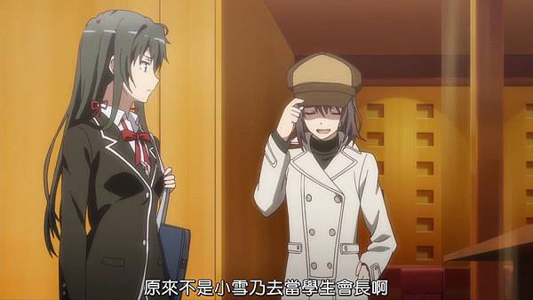我還沒看劇情,這種劇情就是男女主角其中一個人選學生會長,這就有解了,這話幾乎都是在室內對話的回合。以下是我有點主觀的看法,讀者看看就好:我覺得這個故事有點造作,有點太過於講究規則/禮節了,這個故事有不少部份走這個調調,這也許是故事好看的地方,就好像是青春的水彩色澤中畫得好好的學校/建築物,講究的是讓人一眼看到就覺得好或者是有一點點深沉的故事,這個故事有點給我這種感覺,就是包裝得很精美,敘述各種細節與規則是很精緻,但是回過頭來看,規則有些是不一定非得遵守不可的,那有這種所有人都不會受傷的世界?是不是主角們太講究遵守規則/禮節了呢?雪乃就是反對男主角的這種行為的,這是我覺得這個故事有待討論的地方。
