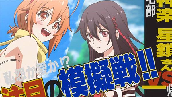 前半段是美術部男的回合,時雨說他之前的新人戰是在御神樂相對的另一間學校參加的,那間學校是體育系為大宗的學校,當時九頭龍轉到御神樂這間學校,後來時雨也轉校了,因此他沒參加過御神樂學園的新人戰。女主角之後連勝兩場後,畢咪說再兩勝之後會和上一話的那個女生對戰,豚困vs相良的場地在像遊樂園的場地對決,相良的能力有演奏結束的cd空檔,這點被豚困發現,最後豚困進八強賽,八強賽女主角vs豚困,女主角一開始還搞宣傳XD,女主角在這場戰鬥中使用了玩具槍的能力,最後女主角用玩具槍的特性加上速度佔優勢贏了豚困,女主角在四強賽輸給了遠石遙架。另一邊是一個紫髮的女生贏了天文系的一年級生。