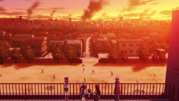 食物漸漸不夠了,眾人打算之後離開學校去藥廠。美紀和胡桃在聊天,除了討論槍的事情,胡桃說美紀愈來愈來由紀了。之後是畢業典禮回。