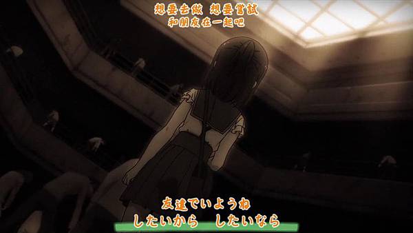 03話試膽回。老師要三個同學拿指定的証物,於是女主角們到了商店、圖書館、這邊可以看到眾人都在哄騙女主角說出現在圖書館的學生已經回去了,