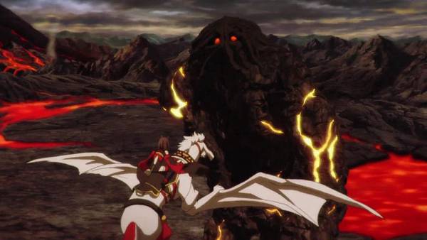 這一話眾人在打石巨人(伊敦),這邊艾哈和寵物(?)把紅龍爪拿了出來,婁震華和石巨人的戰鬥中,婁震華不使用武器格檔被石巨人擊中左手受傷,有個路人角緋紅自願犧牲但沒能成為供品。史瓦羅把土地改為黑龍的屬性,附近的返魂者就不動了。石巨人被史瓦羅用黑龍的招式給消滅了。禍藏伯得知海格(地點)有個女生稱王,主角忌吹認出是她姊姊忌祈。