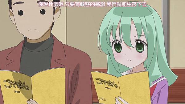 這話一整話都是在介紹動漫電台。這邊有兩次廣播,第一次除了女主角公司的前輩以外,還有佳賓田村由香里登場,這邊有提到廣播的綽號很容易延用下去的說法,第二次是女主角三人自由發揮十分鐘找不到話題的慘況。最後是女主角三人在看她們配音的佛戰士的動畫,咲莓配巨乳好像怪怪的,而女主角雙葉配的PIPO雖然台詞不多卻讓人印象深刻到女主角羞恥地遮住電視。最後是上一話的路人台詞,確實這個台詞比較像是一個路人解說役的呈現方式。這一話有把上一話的配音的伏筆拿出來用,此外這個故事如果比較適合做中篇的漫畫,四格可能不會集集都有爆點,如果只有文字就會遇到解說不清楚的情況,因為這個故事有很多是需要用畫面呈現去補小知識的場合,例如配音室、廣播劇都是,這個故事以這話為例,某由香里的登場就有用到動漫畫的變形現象,這個是只有動漫才可以使用的呈現方式,用柯洛當旁白,除了吉祥物的功用以外,旁白也是這類型故事的必要