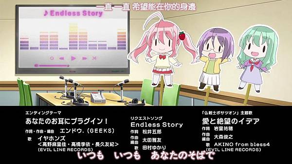 這一話非常地平淡,就是前一話主角三人均落選,佛戰士也播完了,因為三人的組合在廣播上還滿不錯的,於是就組成組合(Earphones)。