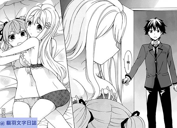 這個故事有很多是主角看不到的女生talk場合,故事好看的地方是女生之間會如何相處的這個議題,男主角的青梅竹馬惠理甚至還是個腹黑現實型的女生,這個故事多半並不是描寫女生的甜美與可愛,而是在描寫女生,以及女生與女生之間對於青春的憧憬/苦澀/殘念感。原因是這群女生並不是一般庶民,無論多麼了解平民們的生活方式,最後八成還是會嫁入豪門,過著從此蕭郎是路人的少婦生活,這群女生就在一邊享受學園生活的同時也在追求自己的幸福。第一卷的標題會讓人以為這本是廢萌向的輕小說,然而第二本開始讓我大為改觀,故事中男主角的話術的水平高於一般人的水平,雖說不代表一定有果青等級的高情商,本作主角的對話一般而言是比果青的主角討喜,比較接近平常會遇到的情況,以上是這個故事有趣的部份。