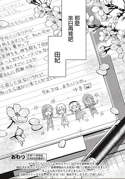 由紀回來和理姊討論。由紀說她還是希望看到漫畫的後續,因此她還是希望能看到新書出現。美紀則是拿畢業紀念冊給理世說了差不多的話。