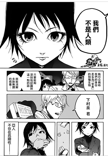 這個故事的設定是亞人是不會意識到自己身為亞人,但因為亞人不會死,體會到死亡卻不會死的時候就會意發現自己是亞人。