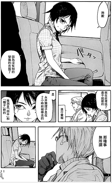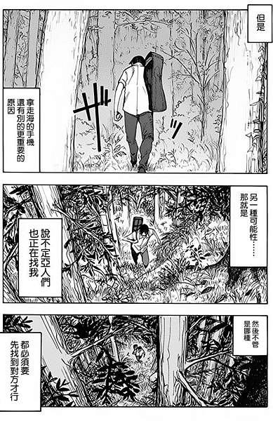 永井和海鬥君把追上來的機車騎士打倒,主角負傷時自殺復原身體,兩人繼續移動。可疑對象說要找到永井。