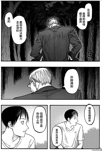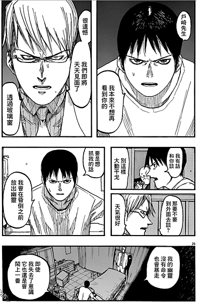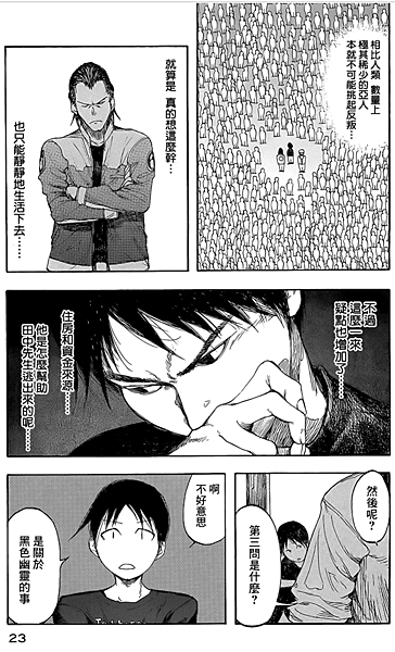 這一話是研究對策的一回,主角的黑影似乎不受主角控制,博士想了解是不是有佐滕不知道的特殊能力?主角說他能持續30分鐘,最多能放九隻黑影。這邊提到主角之所以不理一開始幫主角忙的好友,是不想用多餘的感情干涉事情發展,主角被中野給了人渣的評價。