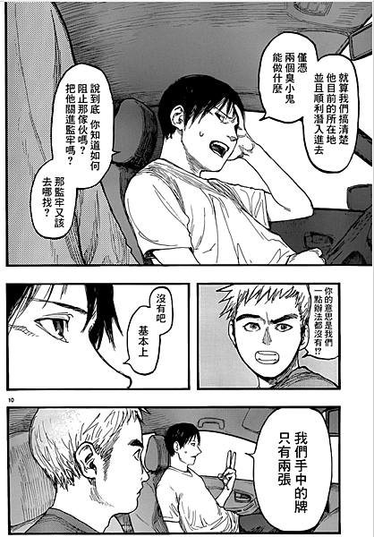 中野是個笨蛋,店裡還叫永井的名字,主角說基本上他們動不了佐滕一行人的,因為他們並沒有能讓佐滕受困的方式。永井說戰場上有肉體、智慧、不死,中野選肉體(……),主角說所有的人會選不死之身,因此要找人支援,這時中野說可以找人支援就去找之前的主和派,兩人在找被抓的主和派成員。主角說手機是有被監聽的風險,但更重要的是是否有承擔風險的價值。主角說戶崎似乎是個可以談的人,主角還查到他未婚妻臥病在床要大量醫藥費的事情,因此一定要抓到佐滕,主角認為可以和他談判。第二波攻擊是暗殺機要名單,戶崎也在名單之中。