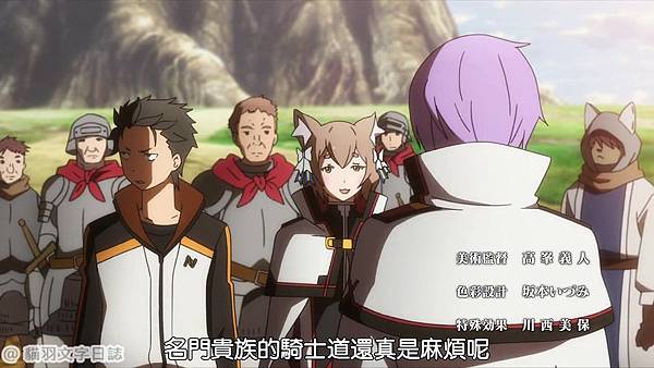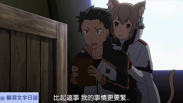 這一話大概到第8集結束。這邊可以看到拉姆看到主角寄了白紙的信件(原因?),以為主角投靠了敵人而敵對,後來誤會解開。至於艾米莉亞的行動,我可以理解為何這個女主角的戲份有些少,總覺得這個艾米莉亞的女角太善良到不像是個人類 (本來就是半精靈...也是啦),怪不得觀眾對這個看起來應該是女主角的登場人物的評價反而不如雷姆。