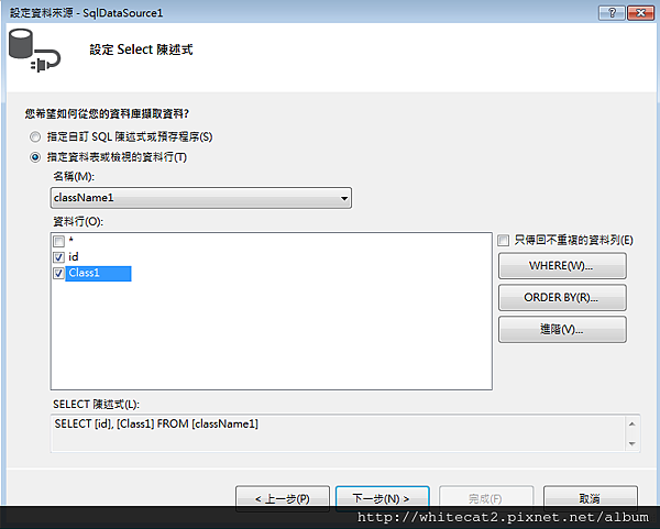 下圖是選定要顯示的欄位