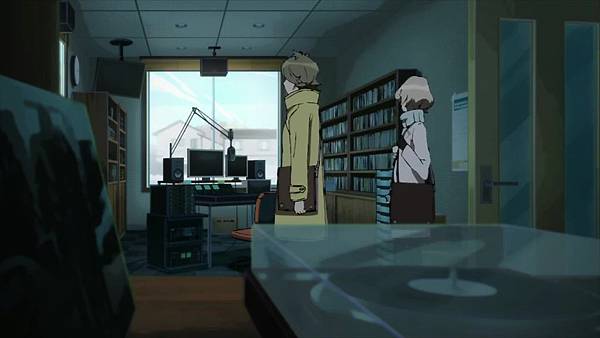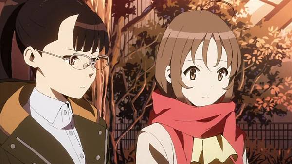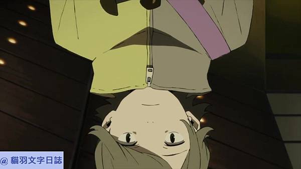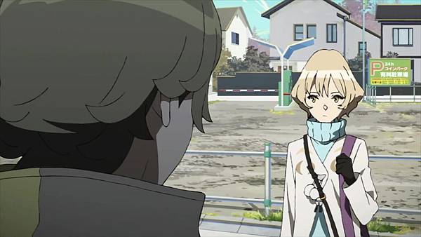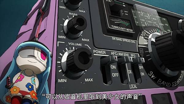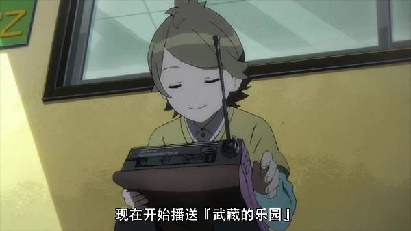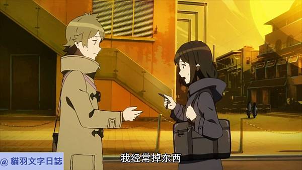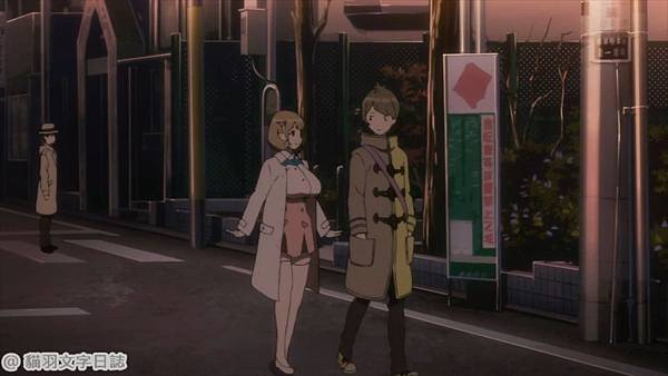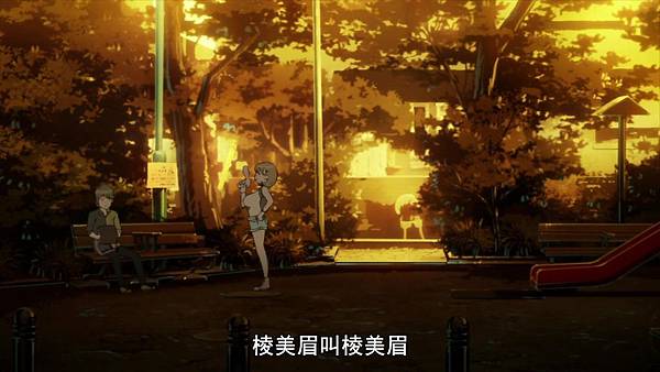 鏡頭回到我聞悠太與棱美眉初次見面的回想回,這邊有些細節可以自己去看,是主角聽到收音機的怪聲後,在公園遇到棱美眉,是像漫畫那種天空掉下來,手裡拿雷射槍類型的電波少女。
