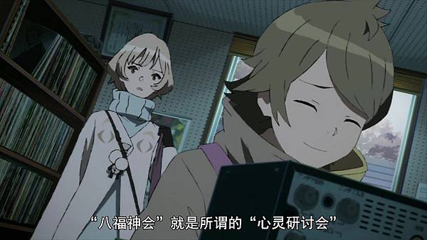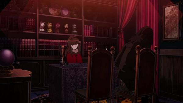 這一話反派登場,這邊其實可以看得出來,主角們待的這個茶館的存在,本身其實就很可疑,因為沒有其他的一般人登場。老闆是現實世界的人,顯然知道內情,這一話就在鬼崎找主角一行人的時候發現這個老闆(八福神會現任教主)涉有重嫌,這個老闆殺了我聞的父親,也是橋上教授事件的真正犯人,稜歌用雷射槍的力量讓主角成為帶電體打倒了老闆。另一邊黑魔術師和哥哥的對話,森刑警問到很重要的情報,在靈體狀態的時候,可以在神遊的時候回到身體,可以先看到一分鐘後發生的事情。