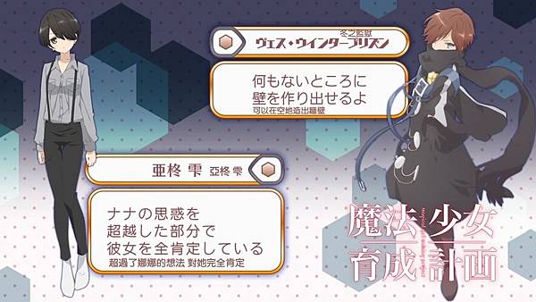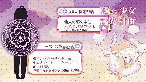 此外這話的最後一名是故意的,她的能力必須睡著才能使用,那就只能當neet才能當魔法少女,這個故事某程度而言拿到的能力就可以決定能否活到最後。