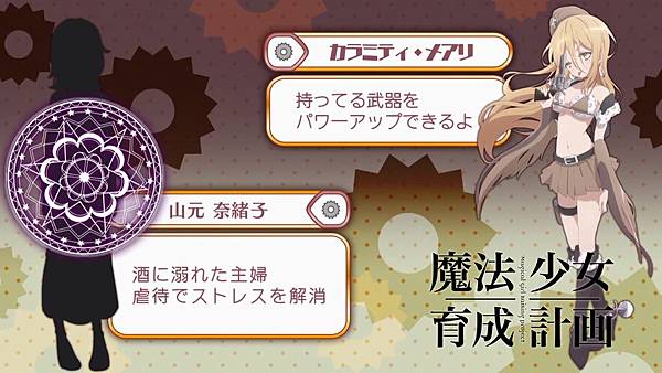 2、忍者魔法女少和手槍魔法少女感情很差,女巫魔法少女勸架,她說那人不好惹不要打架比較好,忍者的能力是100%命中,而偽娘魔法少女的能力是讓劍變長
