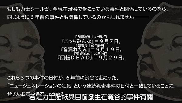 2015年11月6日左右的澀谷,在六年前的地震已重建完畢。碧朋學園的新聞社在調查近期的二起殺人案,因為日期與殺人案(新時代的瘋狂)的日期相同,主角說第三起案件日期一定和前述相同,主角和尾上目擊了案發現場。這邊有提到前作的人物。