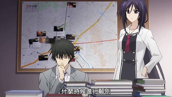 主角、尾上、新聞部的基友(伊藤真二),這三人到地下設施找力士貼紙的制作者,途中三人為了躲人逃進解剖室,主角和尾上看到一個馬尾女角。之後三人跟著進入地下。主角似乎想起以前曾待在這邊的事情,之後久野里澪登場,她說主角三人是怎麼取得key進來的?總之四人一起行動,久野里澪察看資料,是第11張的羅夏克墨漬測驗,那就是力士圖的來歷。主角似乎對大量的力士圖有影響而痛苦跪地。據說Di-sword只有0.01%的成功率,這邊當時就是在做腦實驗,地下設施是收容實驗失敗的病人。