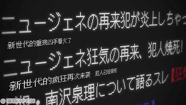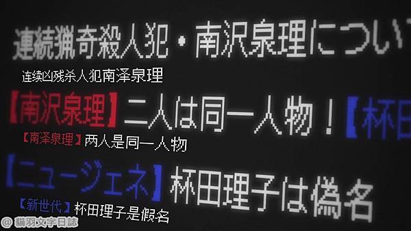 這個劇情是那種破梗後就會變難看的劇本,因為這個故事的最終boss到底是誰的這個問題,一開始嫌疑人是南澤泉理,再來是基友、再來是粉毛、再來是ooxx……,而且重點是根本就沒有線索突然多了個反派boss,遊戲還可以跑第二遍,但動畫不行,也就因此這部沒解釋完全看不懂,怎麼突然boss就是個狂笑,然後boss又換人了?這可能才是這個劇本的主要問題。
