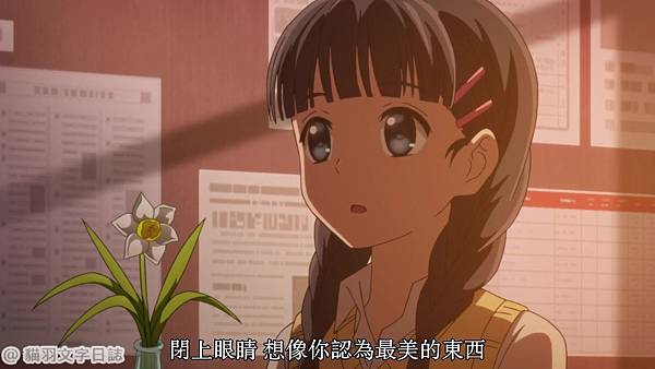 她想變成大樹可以和貓咪一起看夕陽。(這邊可以看到野之尾的破滅個性的設定)