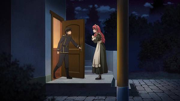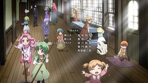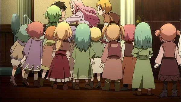 這一話娜芙德(紅短髮像男孩子的女孩)、蘭(藍色長髮的女孩)初次見到男主角,男主角向他們介紹自己是妖精倉庫的管理人(二等技師威廉)