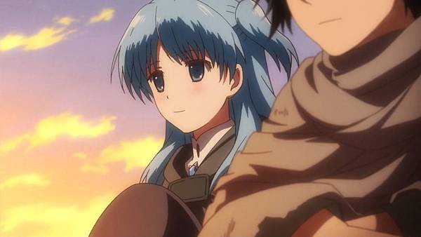 這一話經典的對話在這邊,藍髮的女主角說五天後,第六獸會攻擊天空要塞,她如果自爆可以守護和平,所以希望主角吻她,男主角拒絕。