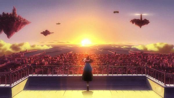 一開始的劇情是女主角和男主角群最後走向敗亡的劇情,戰爭中藍髮女主角縱身一跳的劇情。