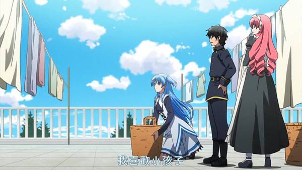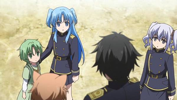 主角到了一個地方,紅色是主角以前認識的人,她說這是秘密兵器倉庫,主角問藍毛這邊究竟是怎樣的地方?軍事基地居然會有小孩?藍毛說你這個都不知道嗎?這邊是特殊兵器倉庫。這邊除了粉髮色的女僕、褐色麻花辮的廚師、藍色諾艾兒版長髮的女主角以外都是小孩子。