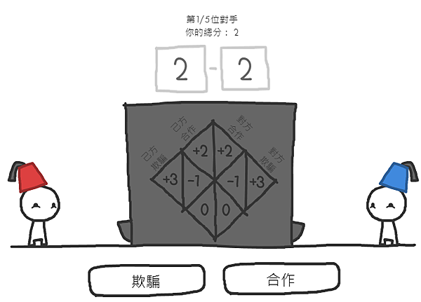 這個遊戲很像「詐欺遊戲」,一開始欺騙人的多數都能賺大錢,但隨著局勢的演進,欺騙人獲利的人會很難組到隊,漸漸地就會被社會所淘汰掉。