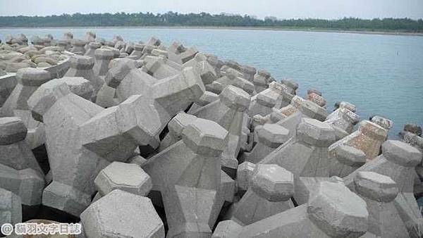 水平彼處有輪船,鷗鳥群飛早夏天, 海岸前排風景好,為君灌作水泥磚。