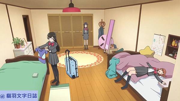 是星期六日的日常回,可以看到主角們都住在同一間宿舍,而且還有門禁,女主角出門找神樂光,然後其他人幫女主角過門禁這關的劇情。