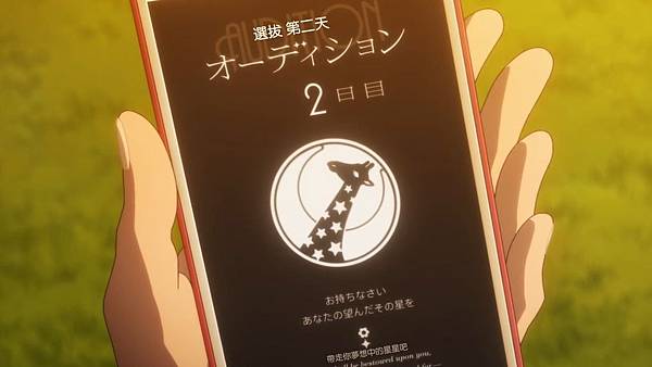 這話是星見純那的回合,劇情和第一話有很大的不同,日常回在介紹班上的西條(曾以童星出道)和天堂真矢(名門之後),其他人被比了下去。星見純那不自覺得說了其他人努力都沒什麼用已經可以不用努力之類的話,之後還因為疲勞過度而昏倒,由banana照顧。女主角整天都和神樂光、純那在對話。戰鬥回合是愛城華戀vs星見純那,最後女主角勝利。長頸鹿說為何女主角一開始沒被選上的原因他知道了,因為女主角和神樂光共享同一個命運。