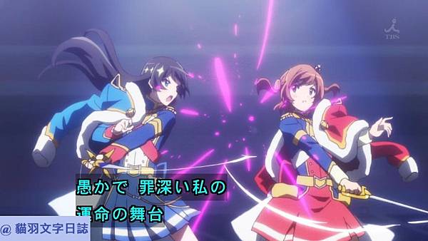 這是2018年夏番。維基連結。這部最大的特色是在像是歌劇場上戰鬥的劇情,原則上打鬥規則就像少女革命,只要配戴的東西掉到地上就算輸了。打鬥加了很多歌劇元素是一大特色。這個故事原作是有舞台劇的,建議先看過舞台劇再來看動畫比較好。