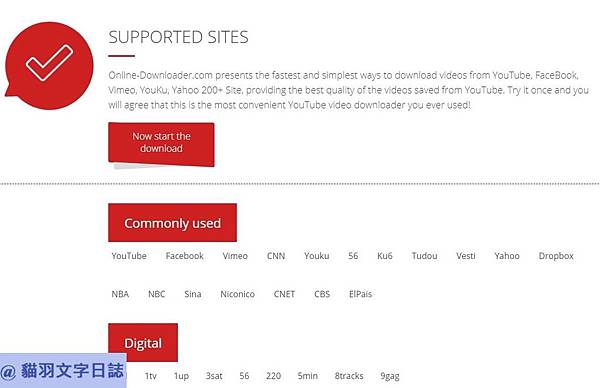 這次的網站也是免安裝就可以下載線上影音的網站,支援超過200多個網站,從YouTube,FaceBook,Vimeo,優酷,雅虎等200多個視頻都支援用這個方式下載,支援網站連結。因為這個網站速度更慢,所以放在這邊供參考。