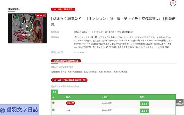 也是輸入連結後下載,查詢成功的話會出現下載連結,在按鈕的部份右鍵,選擇另存新檔就可以下載該影片,這個網站似乎有支援niconico網站的下載,但這個網站也是有廣告不容易下載,所以就供參考。