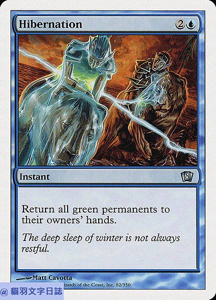 用一點藍色mana即可回手, 其能力可以用來擋對手生物的攻擊, 也可以用來迴避對手的清場攻擊