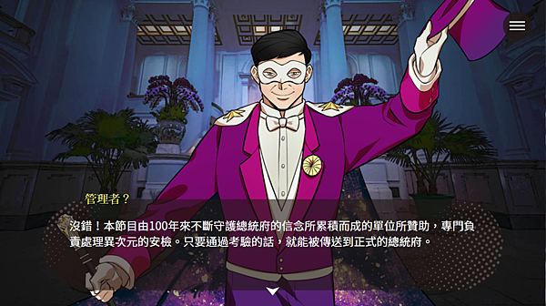這個故事是這樣的:高三的男主角次日要到總統府參觀,班長說總統府傳說有棵芒果樹,只要在樹下許願心願就能成真。當天男主角因為睡過頭趕不上參觀總統府的行程,途中遇到一個少女說可以從某個地方穿牆進入總統府,男主角穿越到異世界(其實是總統府裏空間)遇到各種冒險,還有協助蔡總統找貓咪,最後男主角完成了公民課參觀總統府的行程,大概是這樣的故事。