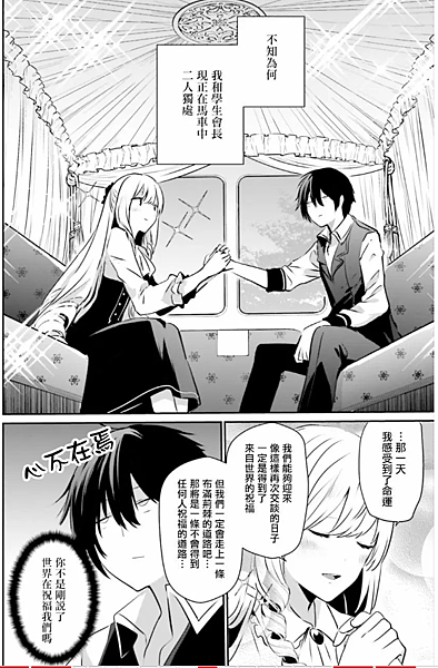 男主角與學生會長見面,學生會長說他要去見未婚夫,