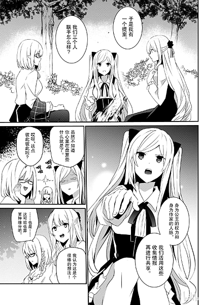 學生會長向公主(阿蕾克希亞)、夏目老師提議聯手分享情報。