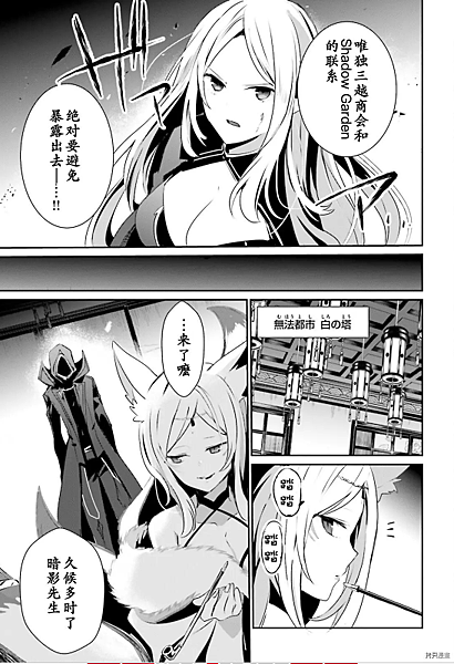 前面也有提到,這邊再度提到暗影庭園就是三越商會,因此雖然沒公開,暗影庭園平日就是三越商會的保鑣,暗影庭園的部下在阻檔其他商會聯合人馬派出來的攻擊。