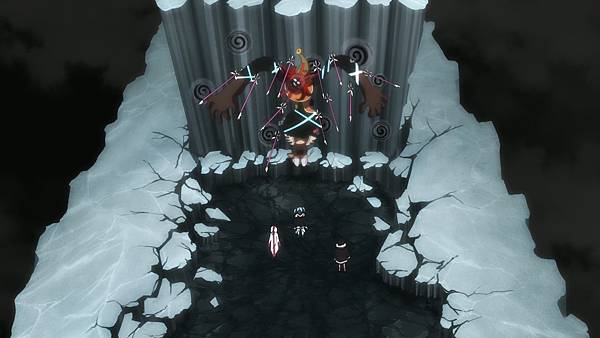 畫面突然換到三日月莊小隊眾人打魔女的場合,一下子就打贏了魔女。